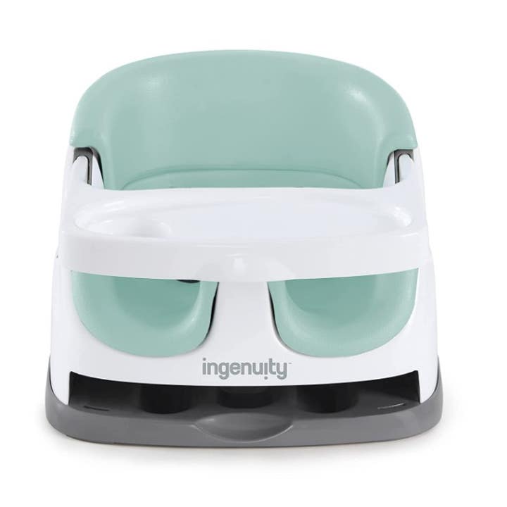 To assemble, remove the seat back from underneath the base; not removeable after installation Safe infant seat with harness for babies sitting up Grows from baby...