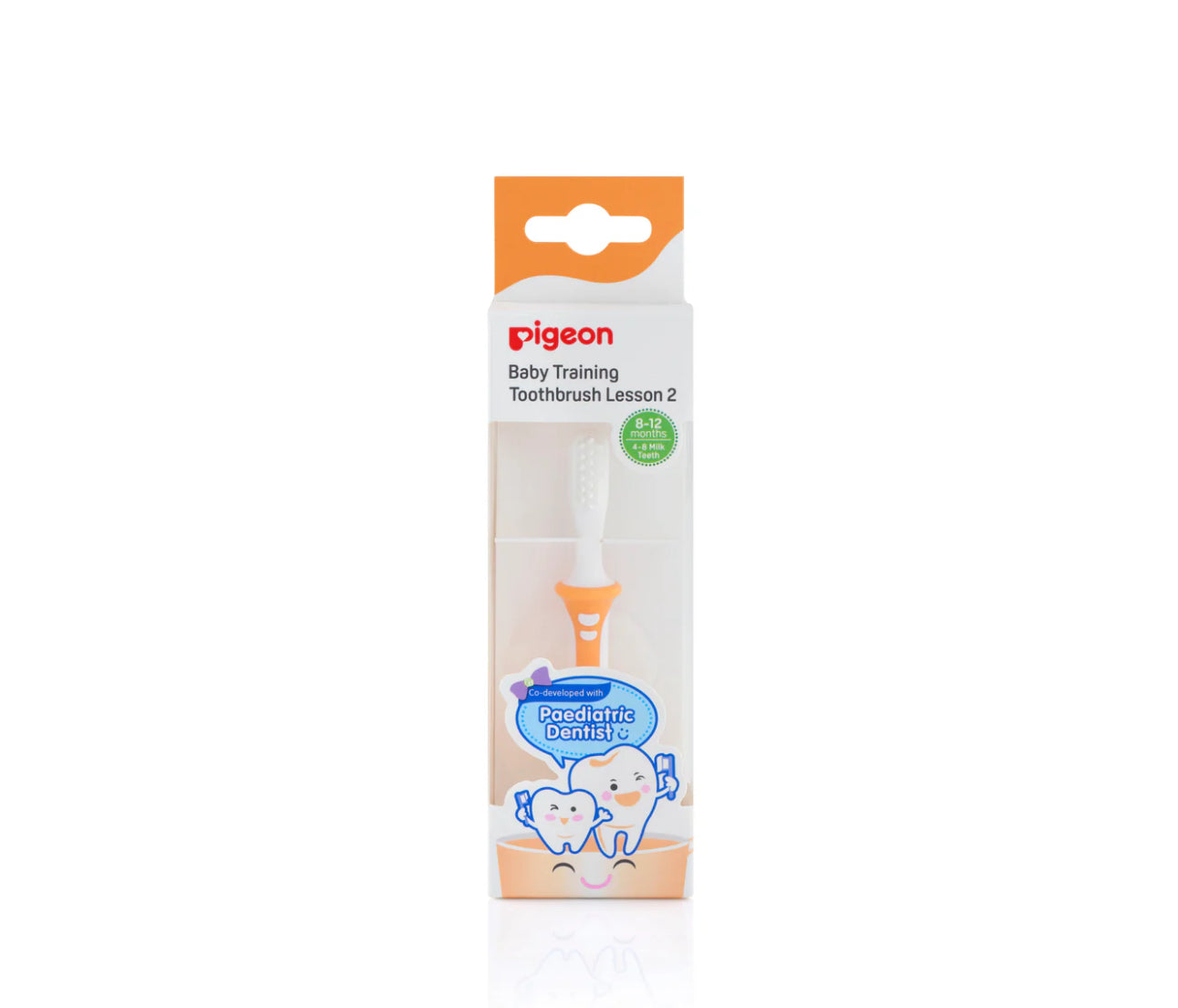 Pigeon’s Training Toothbrush Lesson 2 is your baby’s next step to proper toothbrushing habits and movements.- Co-developed with leading paediatric dentist.- Soft elastomer brush head gently...