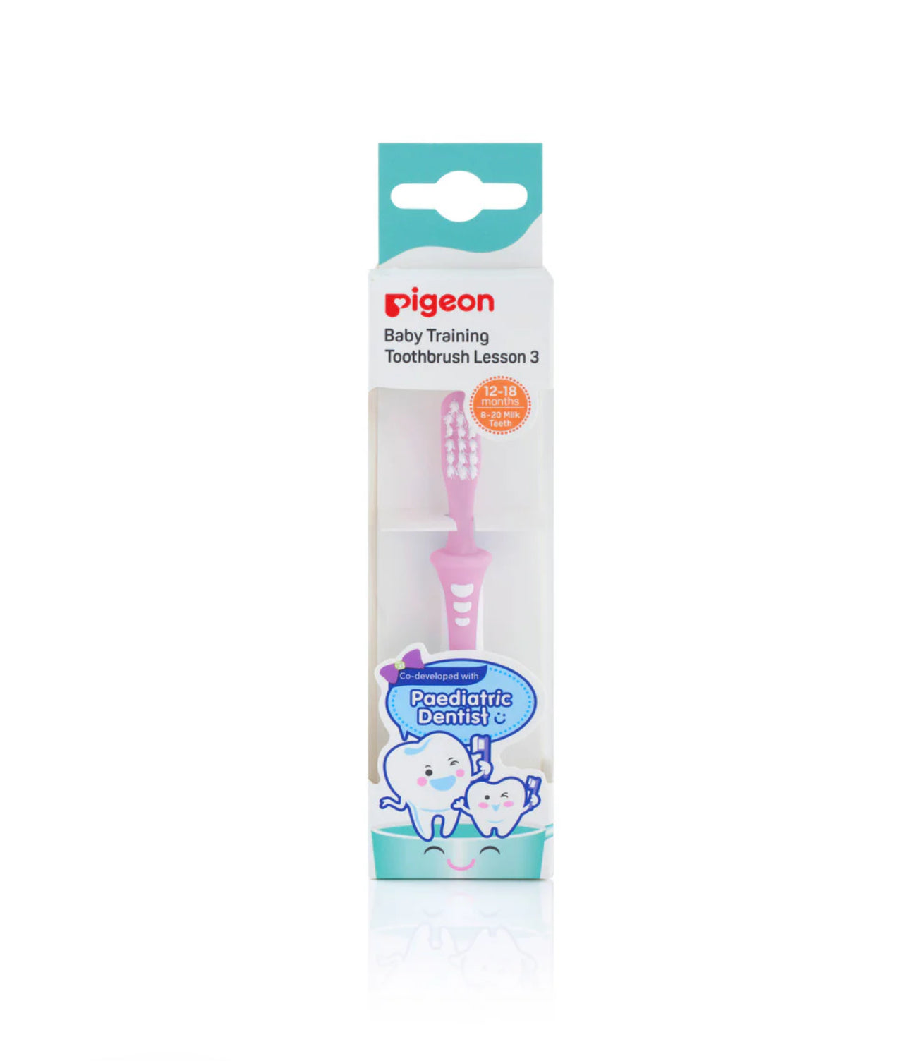 Pigeon’s Training Toothbrush Lesson 3 is designed to introduce your baby to their first real toothbrush. Suited for babies 12-18 months Co-developed with leading paediatric dentist...