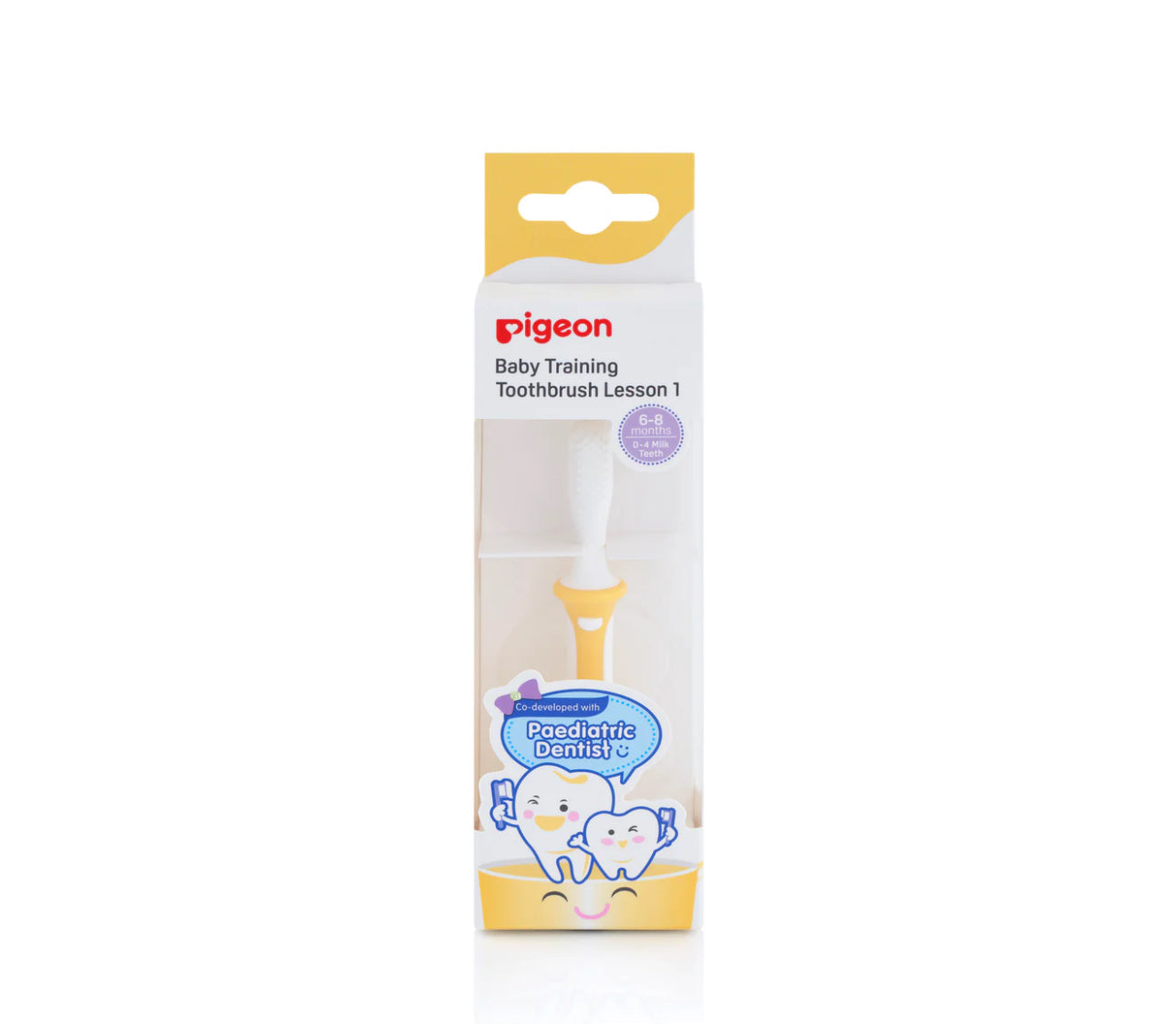 Pigeon’s Training Toothbrush Lesson 1 is your baby’s perfect introduction to toothbrushing and good oral care habits. - Co-developed with leading paediatric dentist.- Soft elastomer brush...