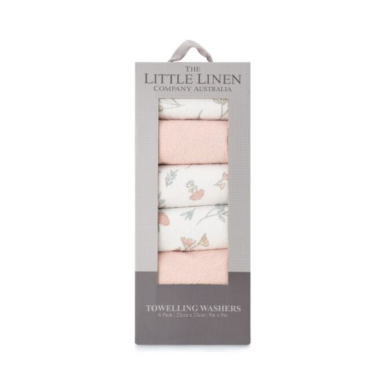 The Little Linen Company 6 pack Towelling Washers. Whether you're using them for bath time or cleanup, you'll never be without these beautiful towelling washers, made...