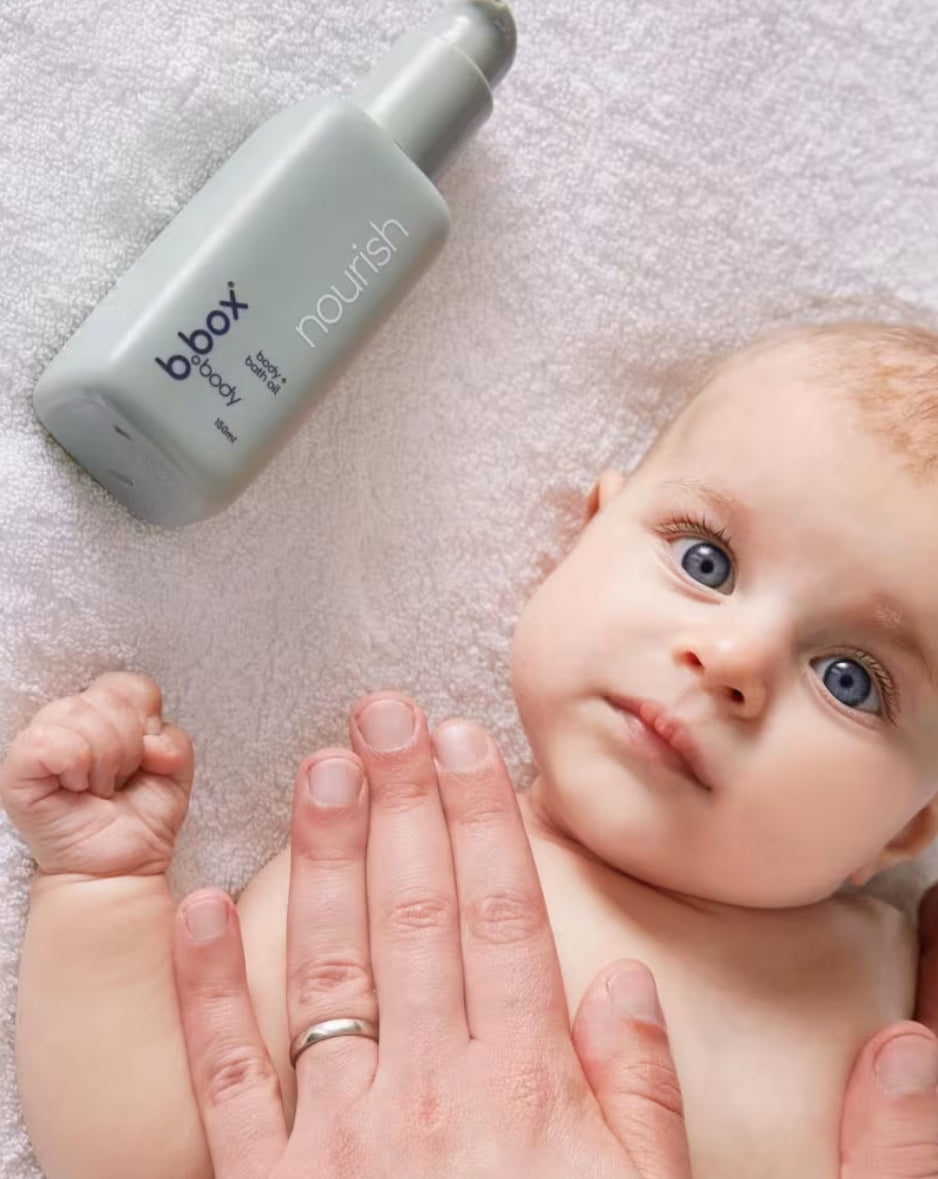 a lightweight bath + body oil made from natural ingredients to gently moisturise and to help leave dry or irritated skin feeling deeply hydrated and smelling beautiful. nourish is free of nasties safe for baby from birth and nourishing for all ages and skin types.