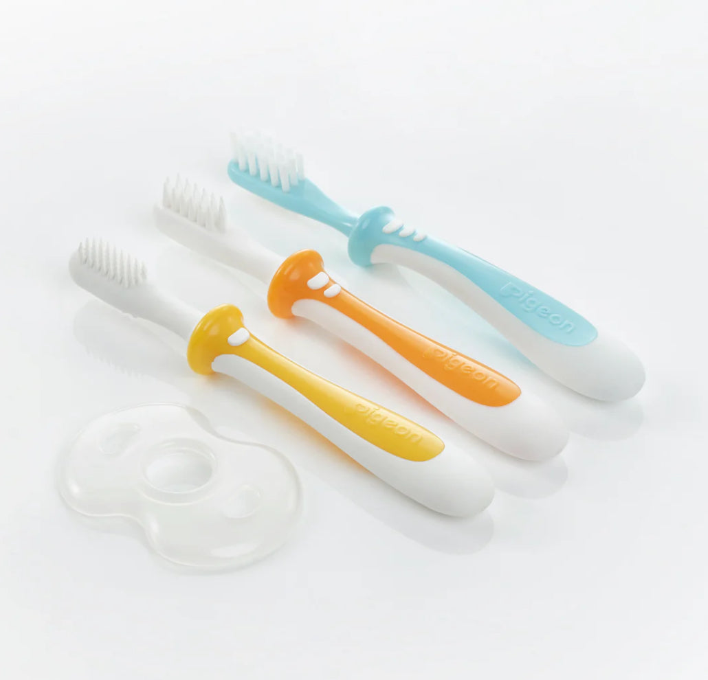 For babies from 6-18 months. Co-developed with a leading paediatric dentist, the Pigeon Training Toothbrush Lesson 123 Set is the complete set of training toothbrushes your baby needs to pick up proper toothbrushing skills.