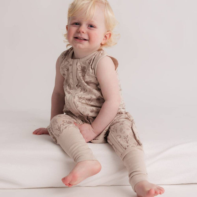 Woolbabe Summer Sleeping Suit - Dune Seascape - 1YR